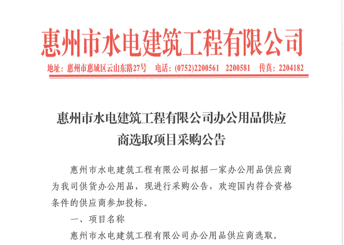 惠州市水電建筑工程有限公司勞務供應商庫擴庫評審結(jié)果公示……